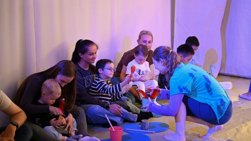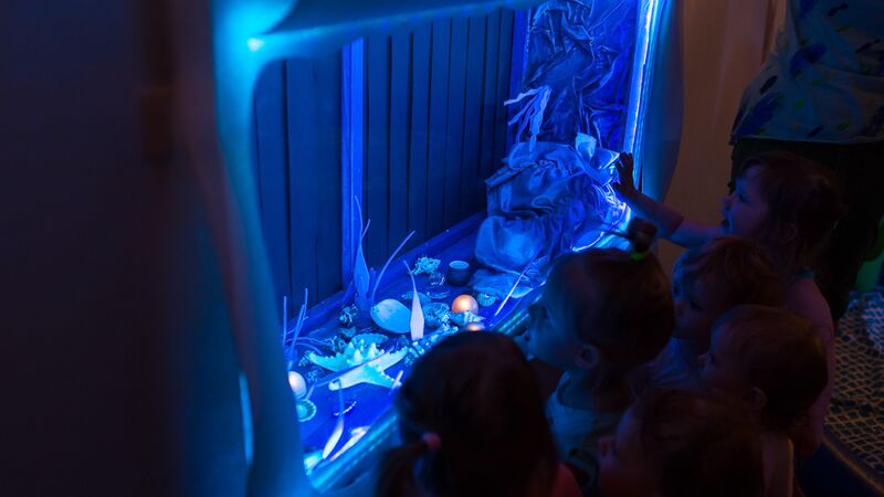 "Вода" играется почти без слов, на эмоциях, образах и тактильных ощущениях. Это рассказ о морях, кораблях и океанских жителях. Главный герой — вода, но дети и родители не просто зрители, они участники всех событий. В спектакле запросто можно попасть под проливной дождь, прогуляться по горам и найти сокровища!